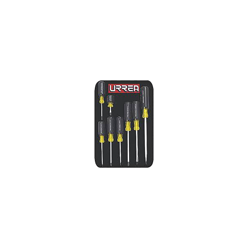 Contiene.- desarmador de punta estándar y redonda: 3/16'x4', 1/4'x4', 5/16'x6', 3/8